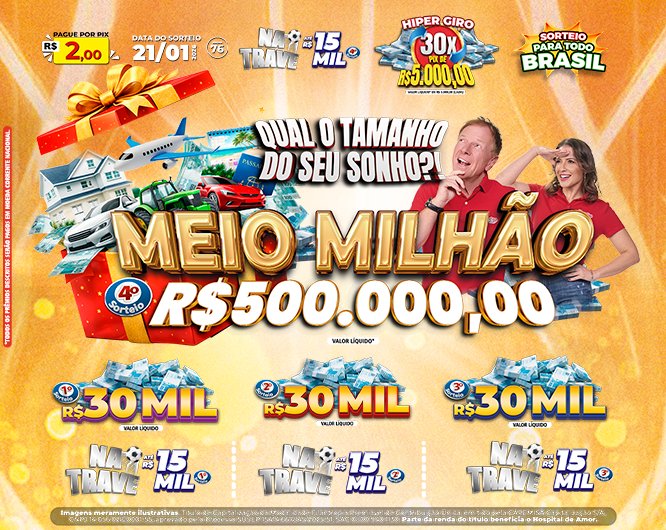 Garanta seu título! Toda quarta-feira, a partir das 21h20, acompanhe os sorteios ao vivo na REDETV e no YouTube.